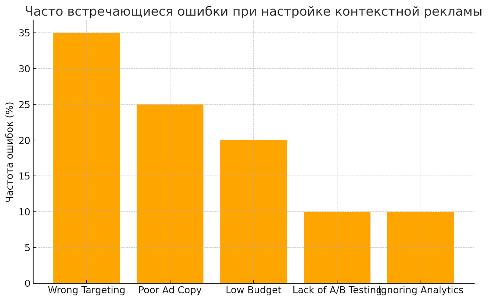 Ключевые слова — основа контекстной рекламы. Одной из самых распространённых ошибок является выбор неправильных ключевых слов, что может привести к нецелевому трафику и значительным расходам.