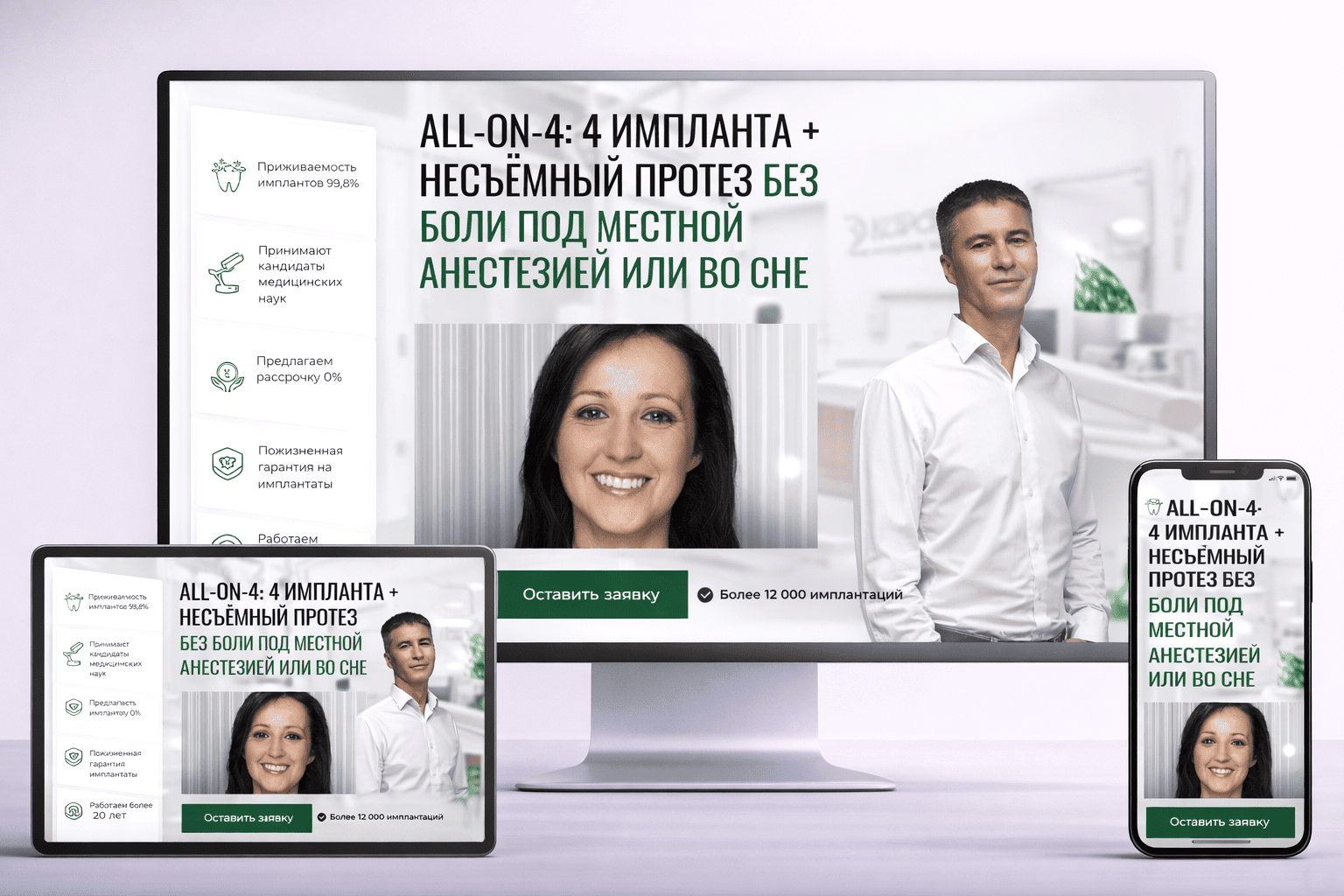 Первое впечатление от сайта 32karata-allon4.ru — спокойная собранность и ощущение контроля над процессом. Интерфейс сразу транслирует состояние «здесь знают, что делают». Холодно-чистая клиническая палитра, реальные портреты врача и пациента, отсутствие визуального давления формируют чувство прогнозируемого исхода. Так делают сайты, которые снимают тревожность и подталкивают к записи — через доверие и устойчивость, а не через нагнетание страха боли. Дизайн разработан веб-компанией РОСТСАЙТ.