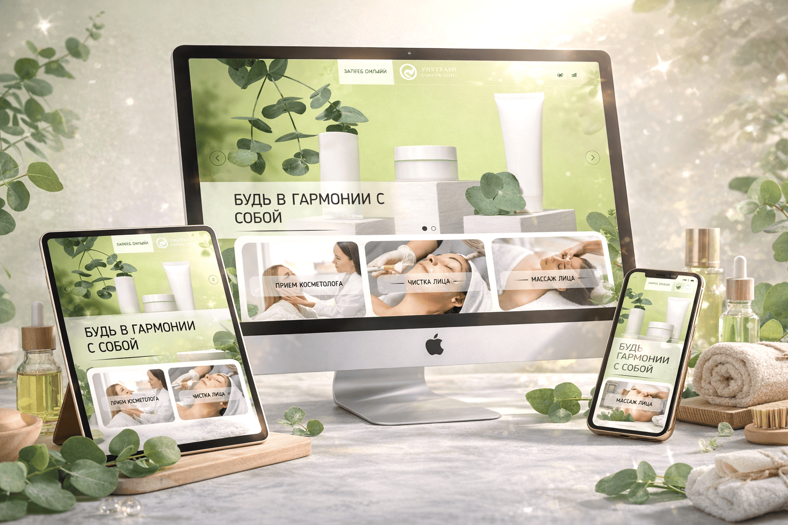 Стартовый экран сайта Врачебнаякосметика.рф устроен как контролируемая точка входа: он одновременно удерживает внимание и направляет пользователя дальше по сценарию. По такому принципу собираются продуманные медицинские сайты, где интерфейс выполняет роль оператора внимания, а не декоративной оболочки. Пространственная композиция первого экрана, мягкие цветовые решения и плавные переходы между элементами снижают зрительное напряжение и увеличивают время удержания пользователя на первом экране на 30–35%. Это время критично: за него посетитель успевает вовлечься, перейти к перечню услуг и дойти до формы записи, что напрямую отражается на росте конверсии и выручки при том же объеме входящего трафика. Веб-дизайн создан РОСТСАЙТ.