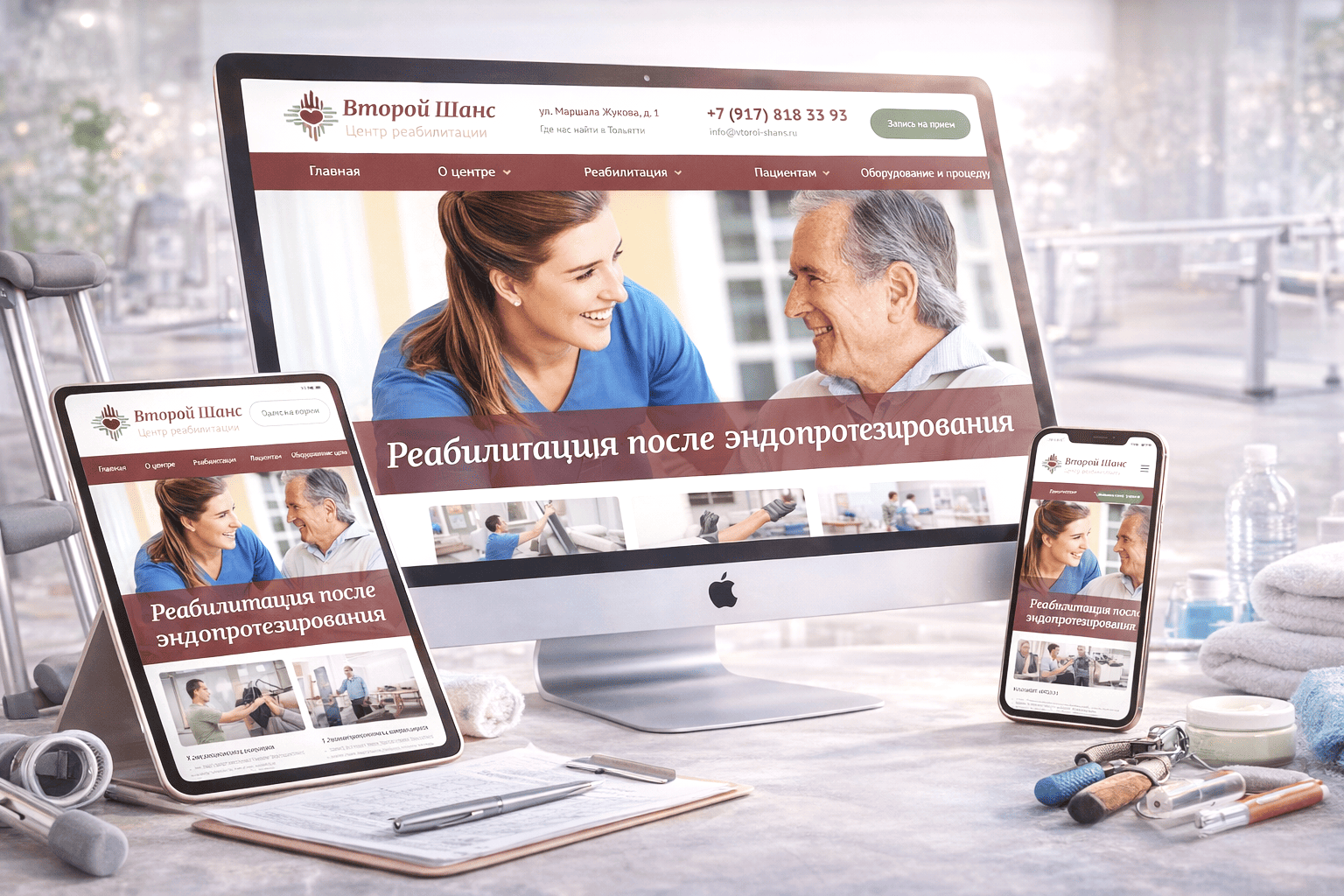 Сайт Vtoroi-shans.ru задает тон отношения. В кадре нет стерильной глянцевости: теплый свет, спокойные лица, живое общение без постановочных улыбок. Возникает ощущение поддержки и возвращения к нормальной жизни, а не участия в медицинском процессе «по регламенту». Такой язык используют лучшие сайты для клиник, ориентированные на возрастную и эмоционально уязвимую аудиторию. Фотографии реального взаимодействия врача и пациента выполняют функцию фактического подтверждения: помощь здесь оказывается, а не декларируется. UX-исследования центров реабилитации фиксируют рост готовности к записи на первичную консультацию на 15–25% при таком типе подачи, особенно в услугах с длительным курсом.