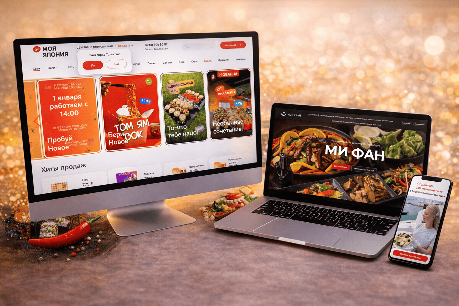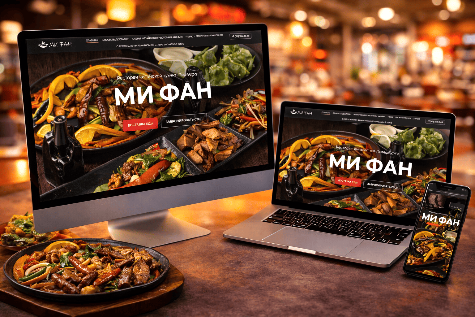 Лучшие сайты для кафе и ресторанов национальной кухни начинают работать еще до рационального выбора, и сайт китайского ресторана Mifanspb.ru строит диалог именно на этом уровне.  Контент создан и выведен в топ Яндекса профессионалами РОСТСАЙТ. Плотные цвета, насыщенный свет, глянец соусов и фактура блюд создают ощущение жара, пара и сковороды, снятой с огня секунду назад. Сайт не объясняет, что это китайская кухня, он передает ее температуру.