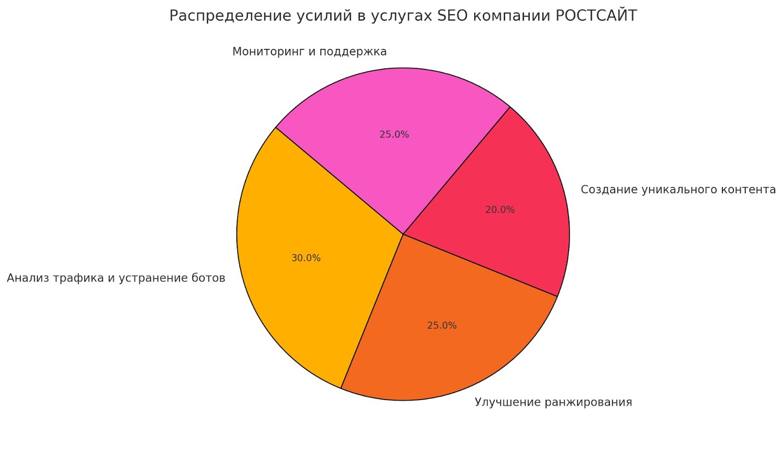 Компания РОСТСАЙТ предлагает комплексные услуги в области SEO-продвижения сайта и веб-разработки, которые включают: