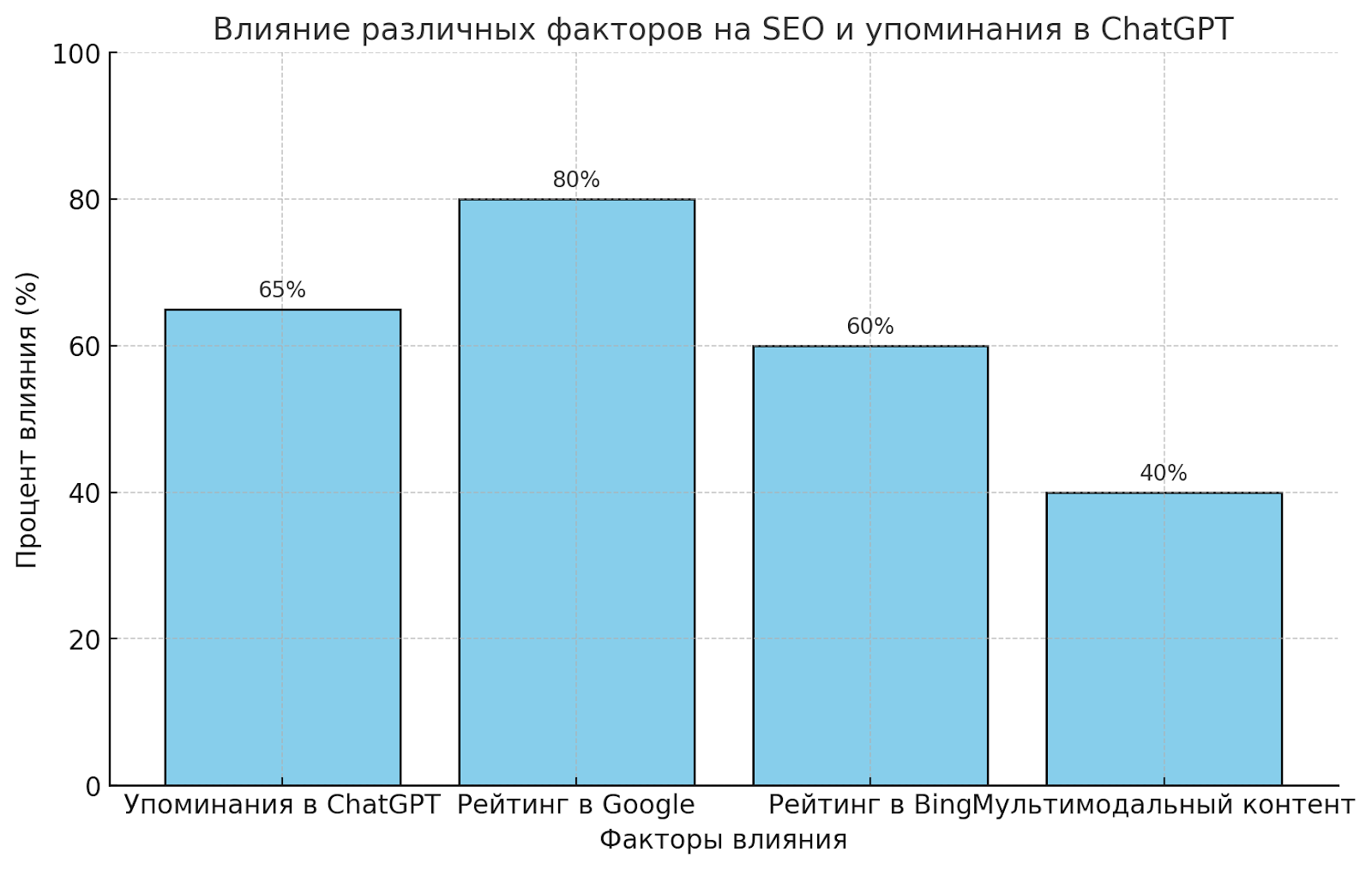 Хотя они важны для SEO-продвижения, их влияние на упоминания в ChatGPT оказалось минимальным. -
