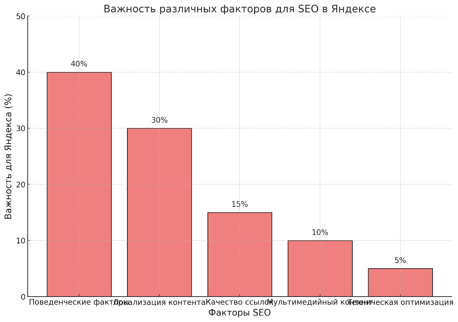 Для Яндекса важнее, как пользователи взаимодействуют с сайтом, чем внешние факторы, такие как ссылки. Показатели отказов, время на сайте и глубина просмотра имеют больший вес.
