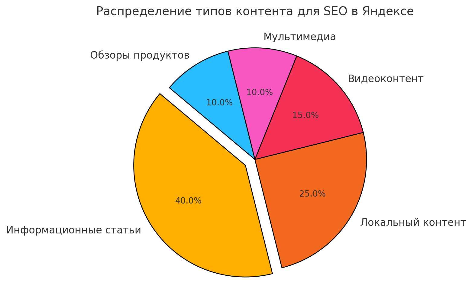 Яндекс лучше понимает сложные языковые конструкции, синонимы и контекст на русском языке. Качественный текстовый контент с глубоким смыслом и без избытка ключевых слов ранжируется лучше.