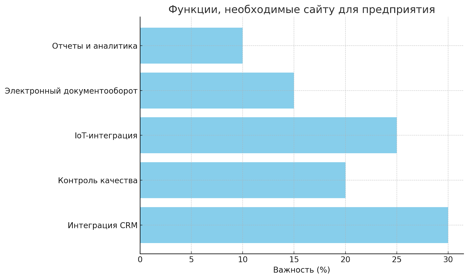 Сегодня создание сайта для предприятия — это не просто разработка онлайн-визитки, а сложный процесс, который включает интеграцию различных функций, таких как IoT-системы, электронный документооборот, CRM и контроль качества продукции.